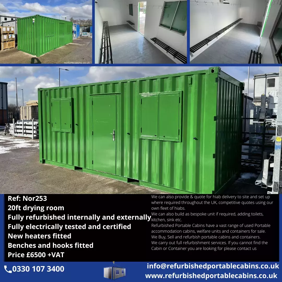 We have a wide selection of used cabins, containers, buildings available that can be utilized as office space, meeting rooms, call centres, sales and marketing suites, nurseries, kitchens, classrooms, toilet and shower blocks, canteens, construction and security offices, storage units, antivandal, welfare units, secure storage containers, onsite and much more. By choosing a refurbished used unit you will have a building that is durable enough to last long-term at a cost-effective price. Our used containers and buildings will be delivered from our central North West Manchester depot.